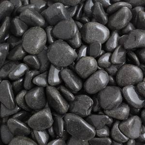 Ebony Black Pebbles are a tumbled rounded pebble that looks dark grey when dry and black when wet. These pebbles can help add contrast and a focal point in planting schemes. Also available in a larger size Ebony Black Cobble.