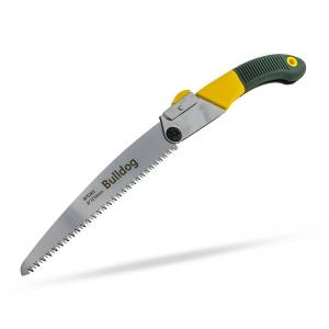 Bulldog's lightweight Folding Saw is perfect for pruning, trimming and general garden use. The tough SK-5 steel blade offers great hardness and wear-resistance and is designed with 7 teeth per inch (7 TPI) for aggressive cutting requirements. The folding system means the blade can be stored in a safe way when it is not in use.