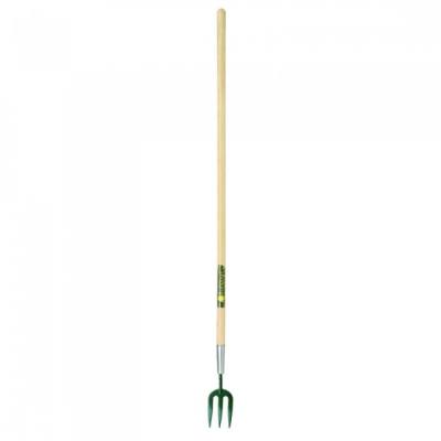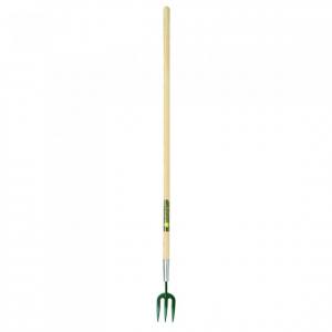 The long handled divot fork is fitted with a 3 prong solid forged one piece weed fork head and a long 54" Ash handle with chrome ferrule. It is also useful for reaching the back of rockeries, flower beds and borders without walking over the soil and damaging delicate plants. The longer handle means that users can work in comfort without straining the back or knees.