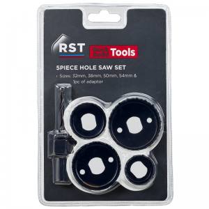 Contains 4 hole saws with an arbour & pilot drill. The diameter of the hole saws are 32,38,50 & 54mm