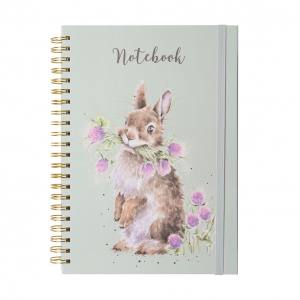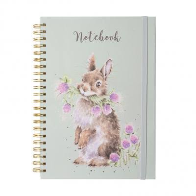Featuring our 'Head Clover Heels' rabbit design, this A4 spiral bound notebook will be all you need to stay organised. The notebook has a textured finish, the inner pages are lined and illustrated and there is an elastic to secure it closed. This notebook will make a great gift and is perfect for work on the go.