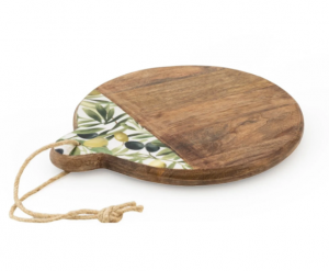Crafted from the finest mango wood and adorned with an olives motif, this handcrafted round chopping board combines functionality with aesthetic charm. Its durable surface is ideal for slicing, dicing, and serving, while the hand-painted olives design adds a Mediterranean flair to your culinary preparations. The rich natural grain of the mango wood ensures that each board is unique, with a quality finish that's gentle on knife blades.