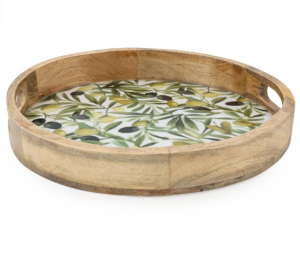 Crafted with care from premium mango wood, this handcrafted round tray features a beautifully rendered olives motif, bringing a slice of Mediterranean charm to your table. The robust wood ensures durability for daily use, while the distinctive, hand-painted design adds an artistic touch that enhances any serving occasion.