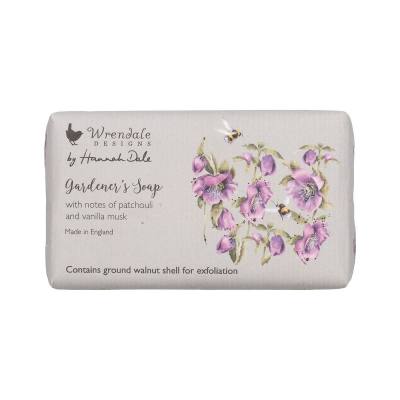 Scrub away dirt after a day's gardening with our exfoliating gardener's soap bar. With a fragrance of pine and sandalwood this beautifully wrapped soap bar would make a great gift for a green fingered friend. Made in the UK. 190g bar of soap with textured sustainably sourced paper wrap. 105mm x 57mm x 35mm. Paraben & SLS free. CONTAINS GROUND WALNUT SHELL. Enriched with shea butter. Vegan friendly and cruelty free.