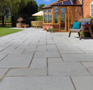 Tudor Antique paving features rounded corners and a smoother riven relief to the face, specifically to blend sympathetically with older properties and gardens where the design seeks to provide an established feel.
