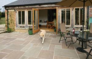 Tudor Antique paving features rounded corners and a smoother riven relief to the face, specifically to blend sympathetically with older properties and gardens where the design seeks to provide an established feel.