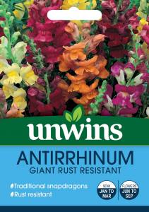 Unwins Antirrhinum Giant Rust Resistant Seeds or Snapdragon are a half-hardy annual - a truly classic garden favourite. They will look wonderful adorning borders and containers around your garden.