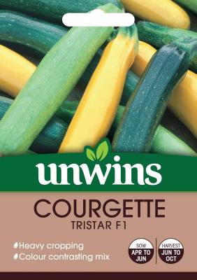 Unwins Courgette Tristar F1 Seeds produce an exciting, colour contrasting mix of delicious courgettes.