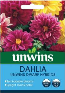 Unwins Dahlia Unwins Dwarf Hybrids Seeds produce half-hardy annual dahlias that have an upright, bushy habit.