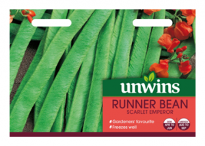 Unwins Runner Bean Scarlet Emperor Seeds yields long, straight pods or excellent flavour. Scarlet Emperor has been a gardeners' favourite for many years.